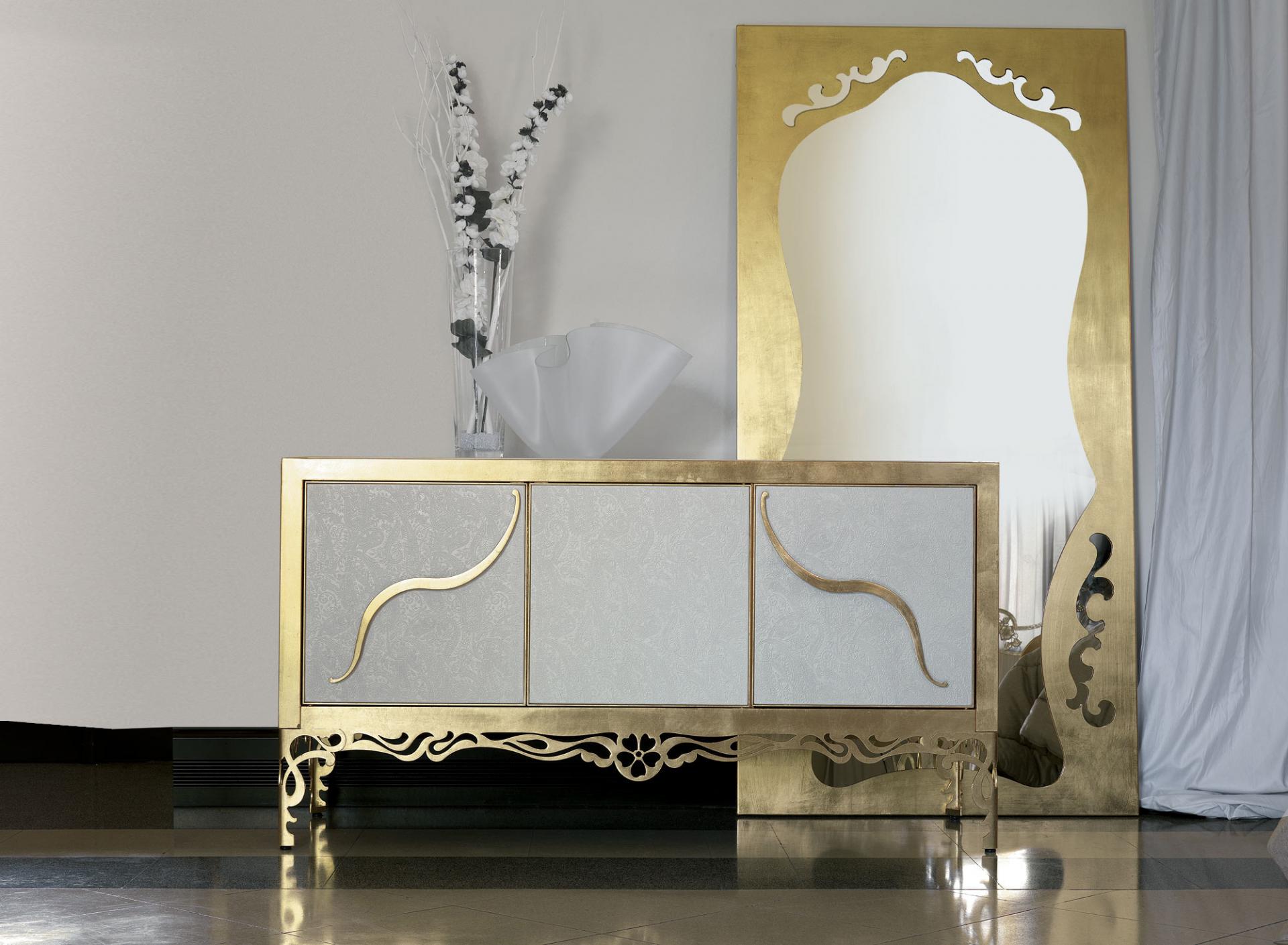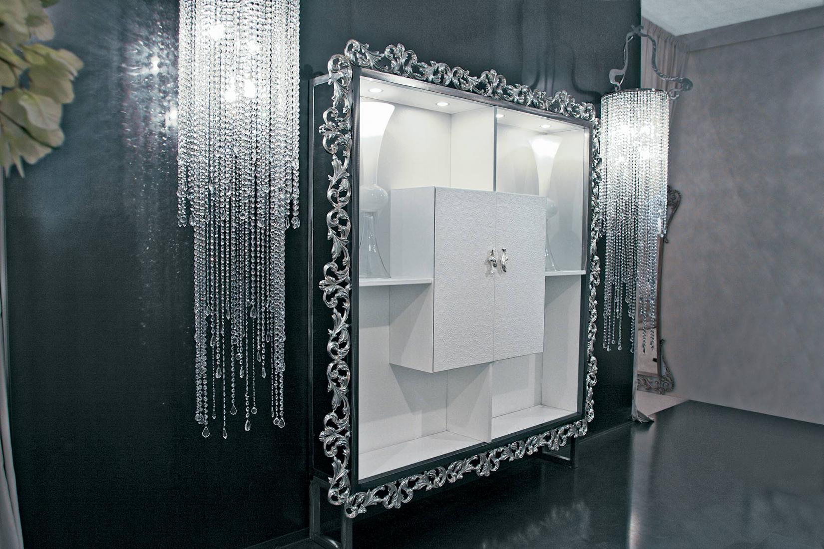 bookcase in wood and satin brass iron with glossy solver plated finish