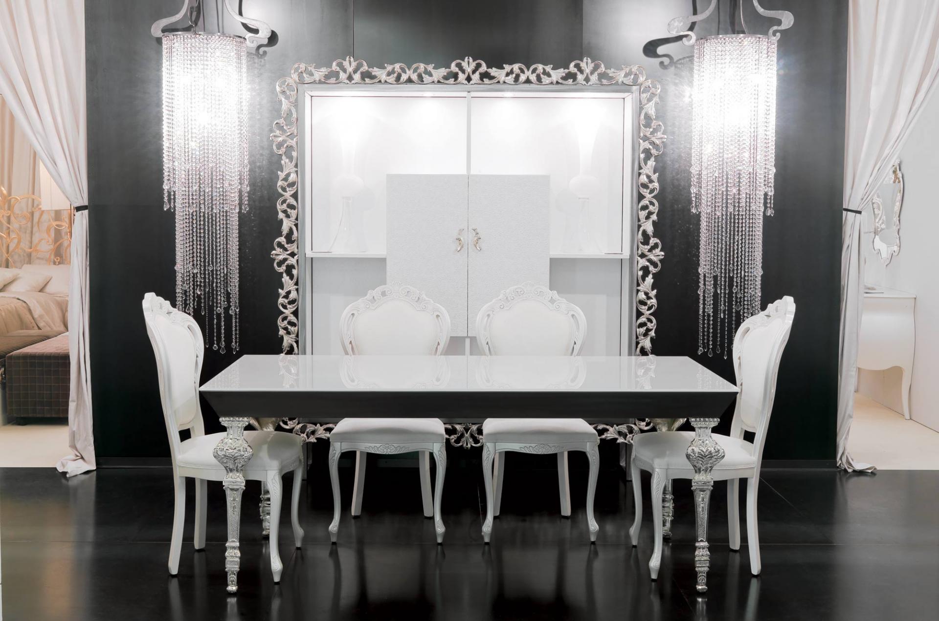 table in satin brass iron with glossy silver plated finish wooden chair with pearl white finish